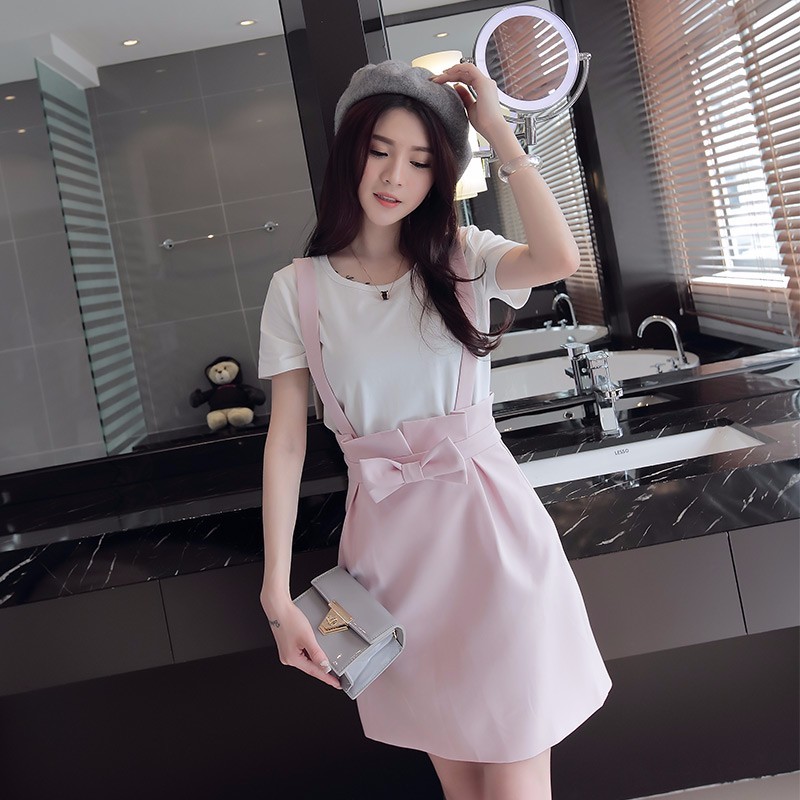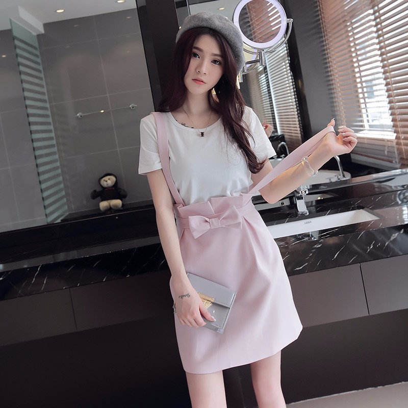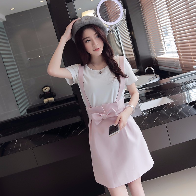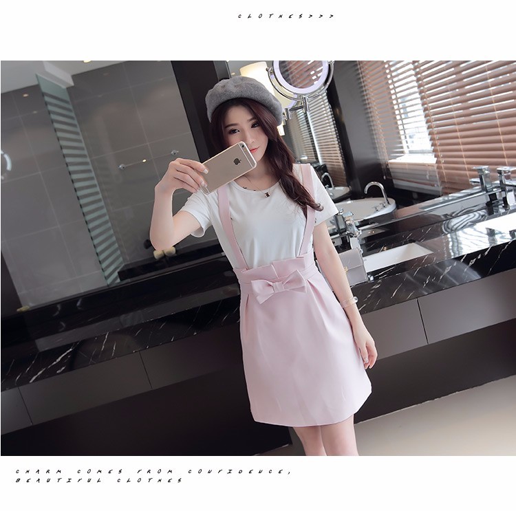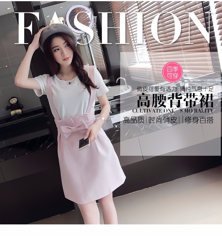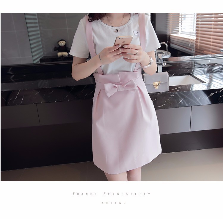 407 实拍夏收腰显瘦背带裙一步夏韩版女学院风淑女连衣裙子女款