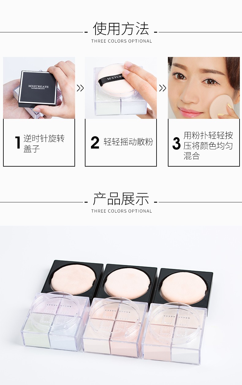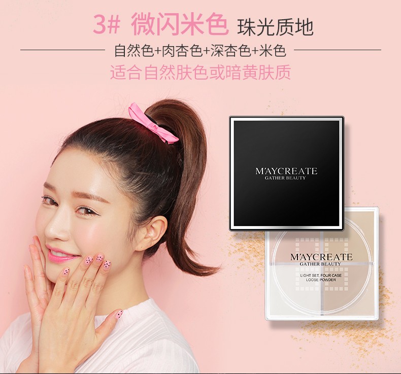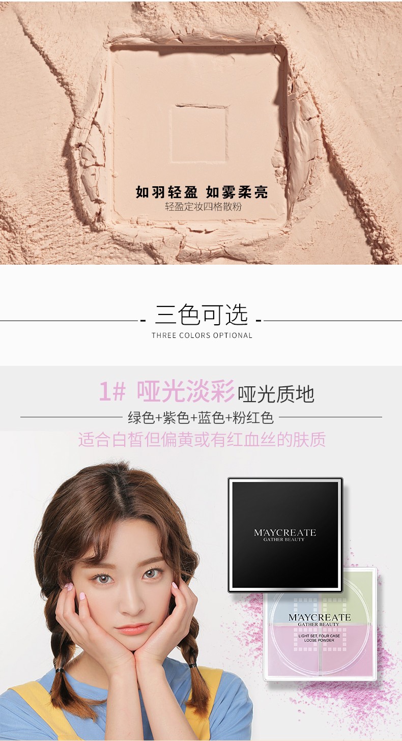 1455【买1送1】四色散粉定妆粉饼蜜粉底持久控油防水保湿修容遮瑕正品 美白洁面