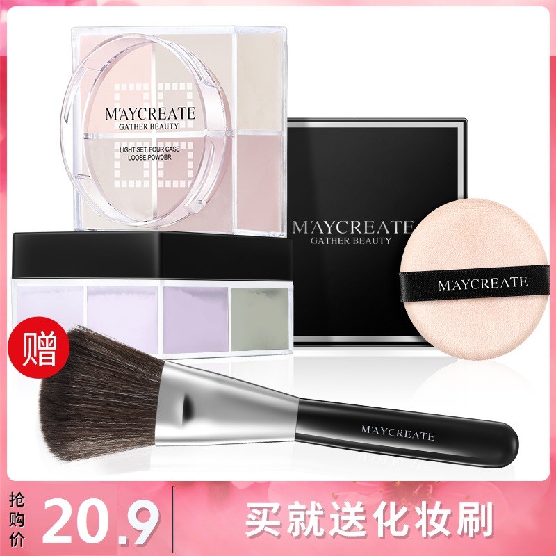 1455【买1送1】四色散粉定妆粉饼蜜粉底持久控油防水保湿修容遮瑕正品 美白洁面
